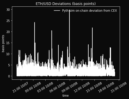 10/7 8:00 PM - 10/9 9:00 PM. During this subperiod, Pyth simulated case avg. deviation is $0.22 (1.6 bps).
